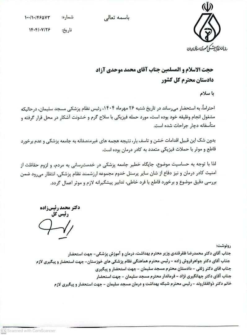 سوءقصد به جان رئیس نظام پزشکی مسجدسلیمان